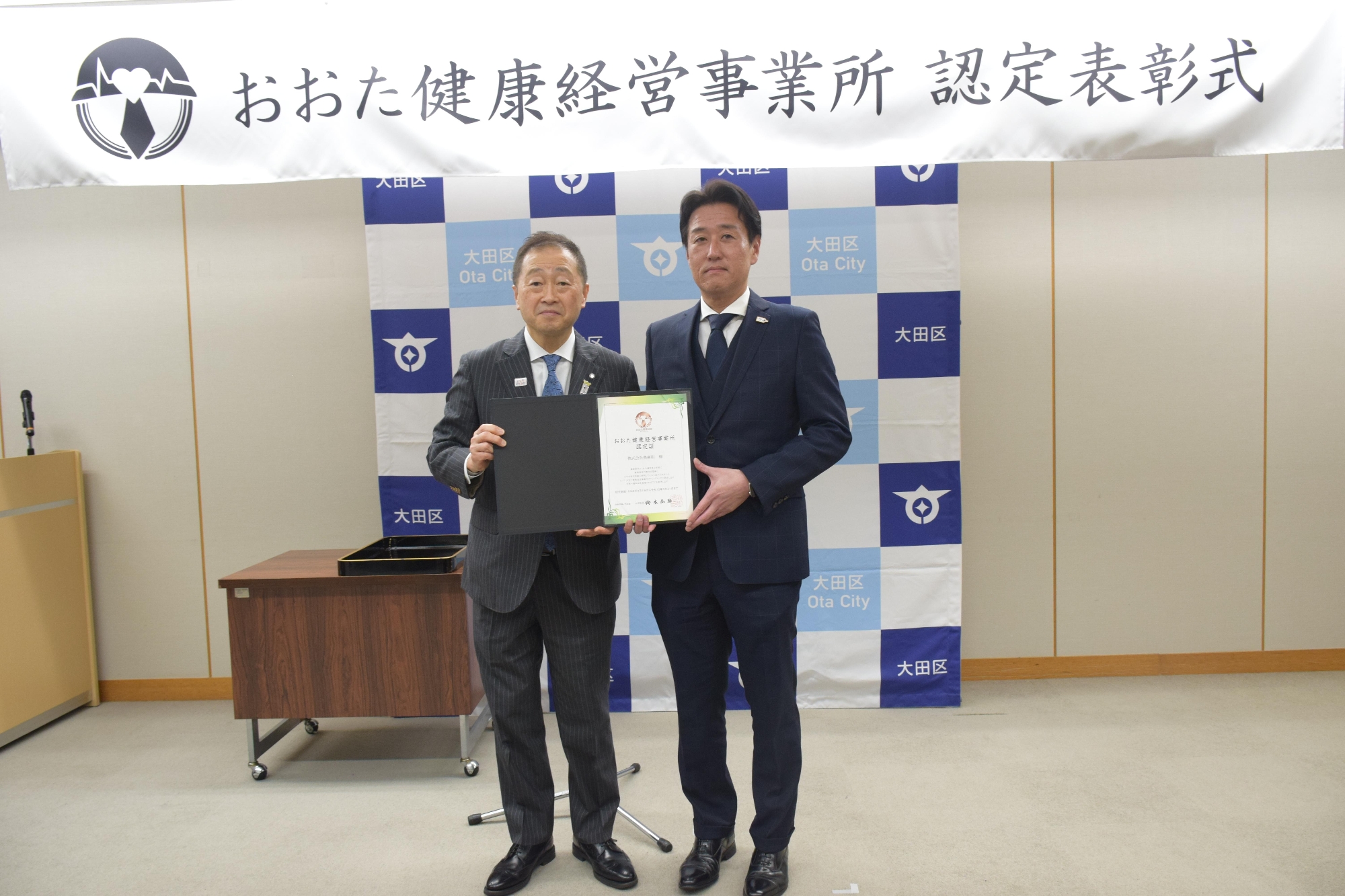 大田区 鈴木晶雅区長より認定書授与